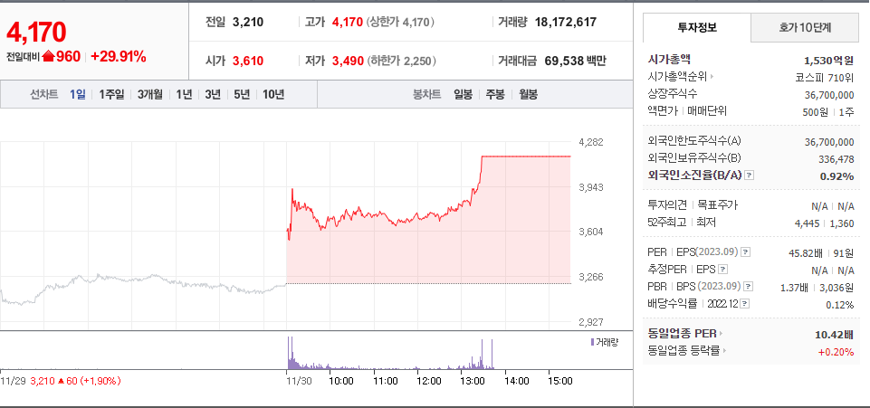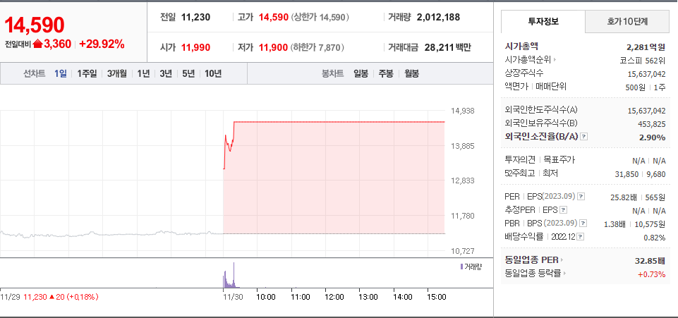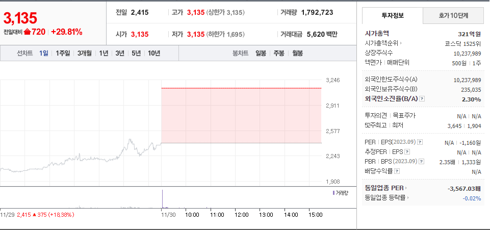 2023년 11월 30일 - 상한가 종목