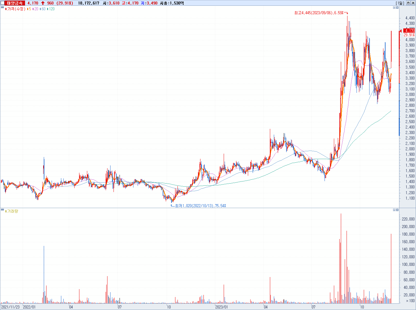 2. [코스피] 태양금속 [한동훈 테마주]