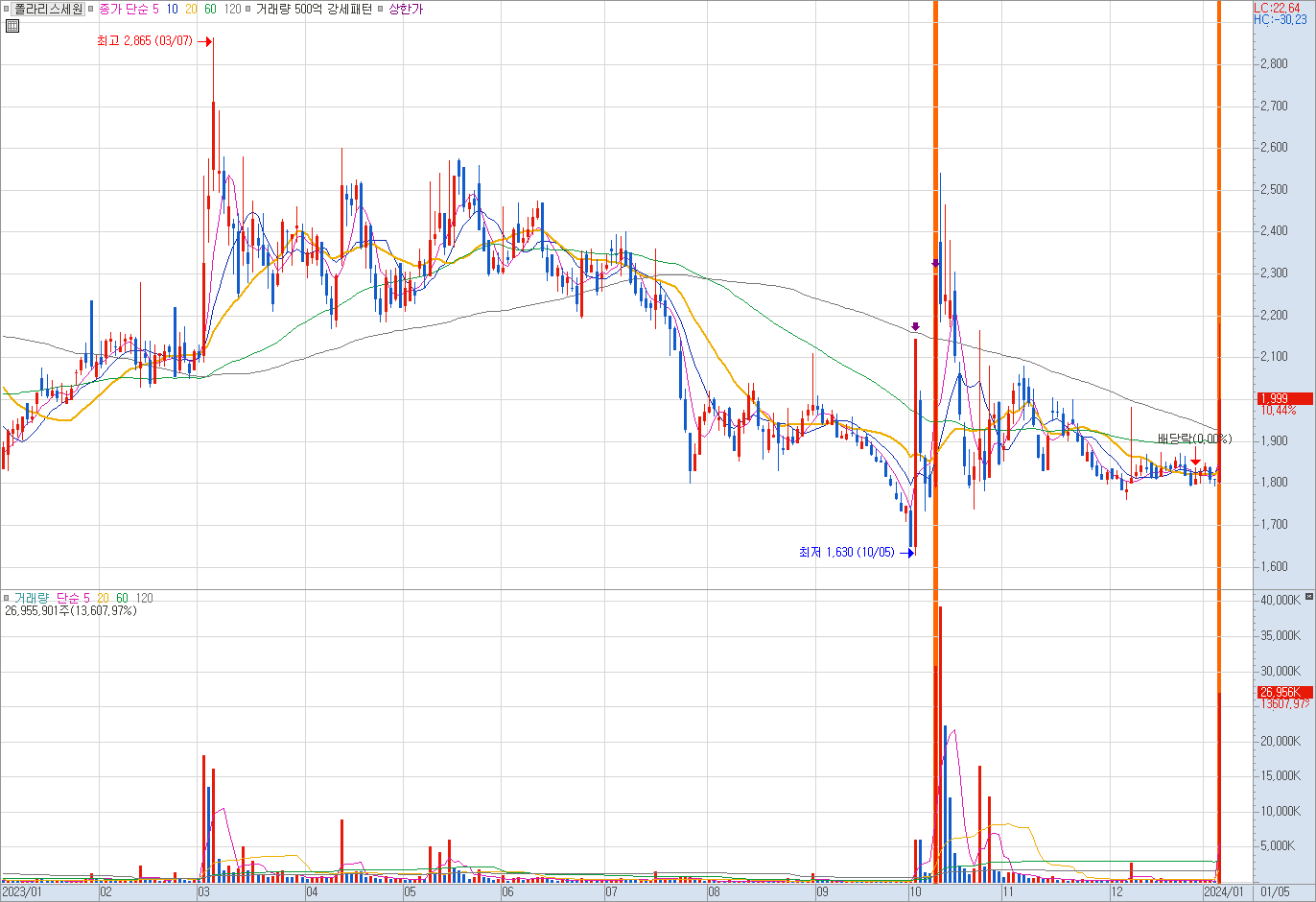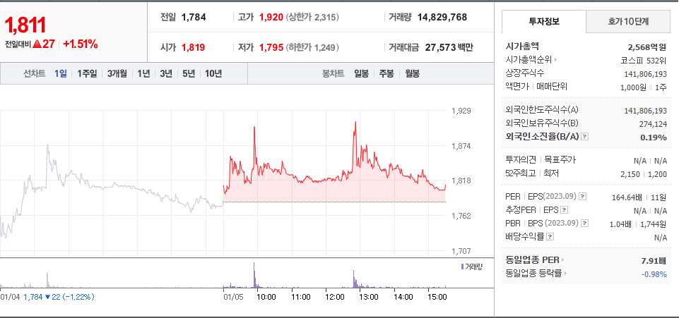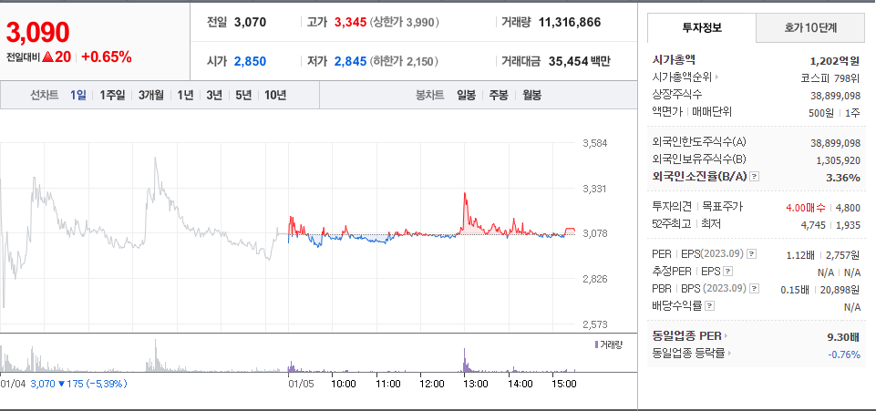 2024년 01월 02일 거래량 천만주 이상, 2024년 01월 03일 장 시작 후 곧바로 상한가 진입 후 이탈. 실적 개선 기대감만으로 오르는 게 맞는걸까?