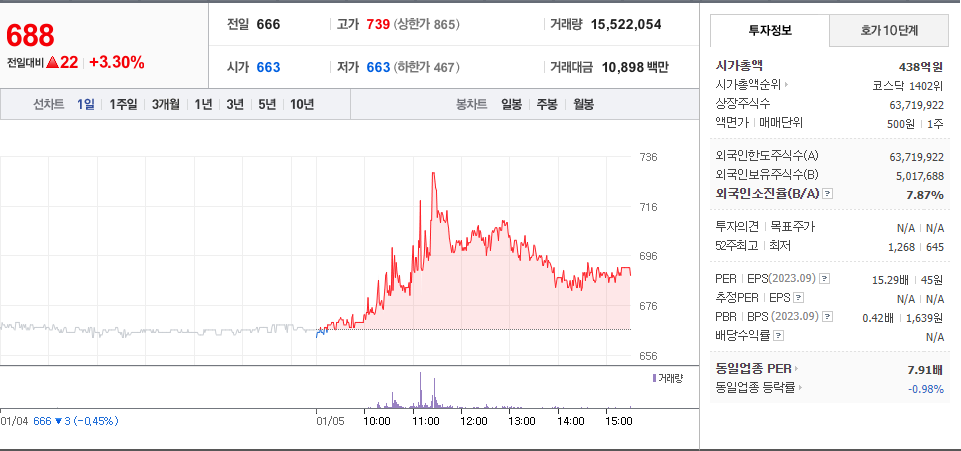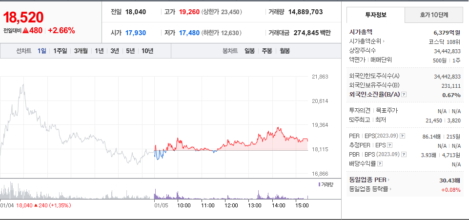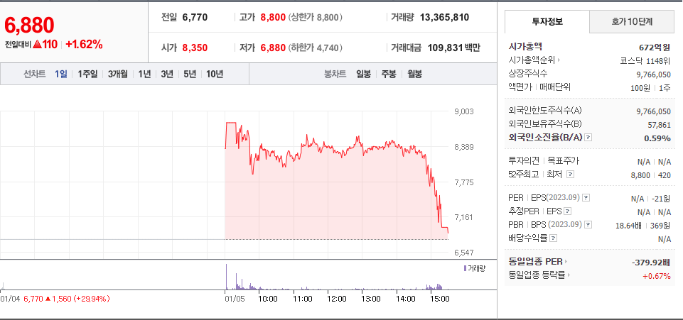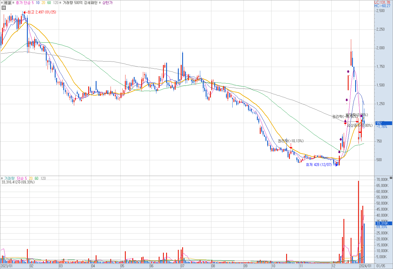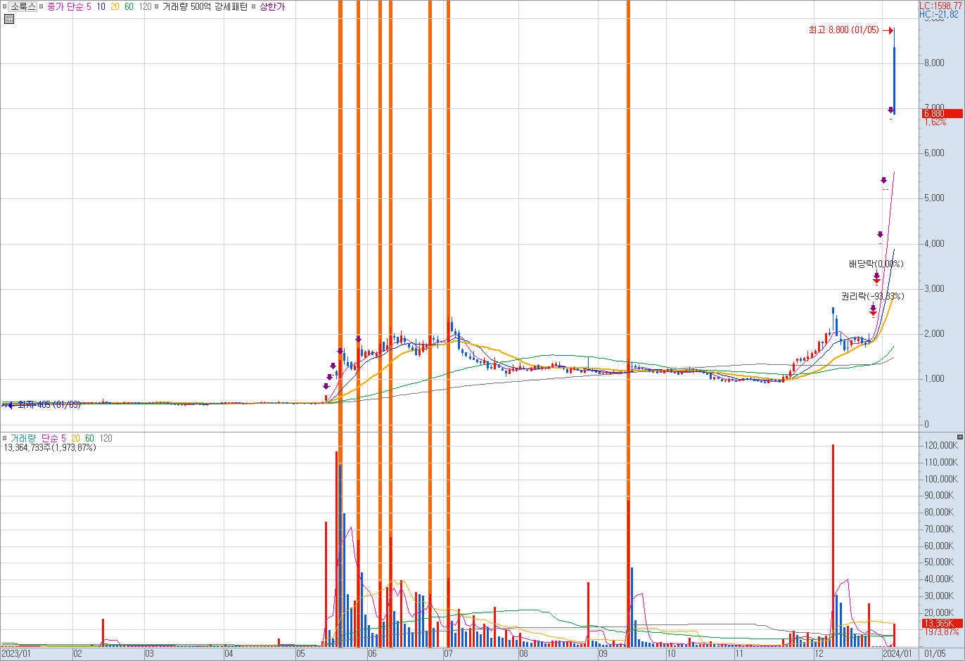 [2024.01.05] 무승증자 권리락 효과에 6거래일 연속 상한