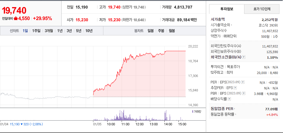 2024년 01월 05일 - 상한가 종목