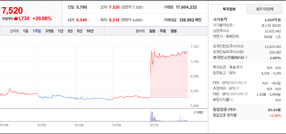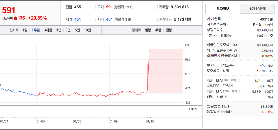 2024년 01월 10일 - 상한가 종목