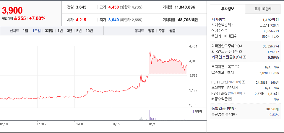 | 2024년 01월 11일 - 거래량 천만주 이상 (1) | 2024.01.11 |