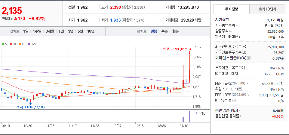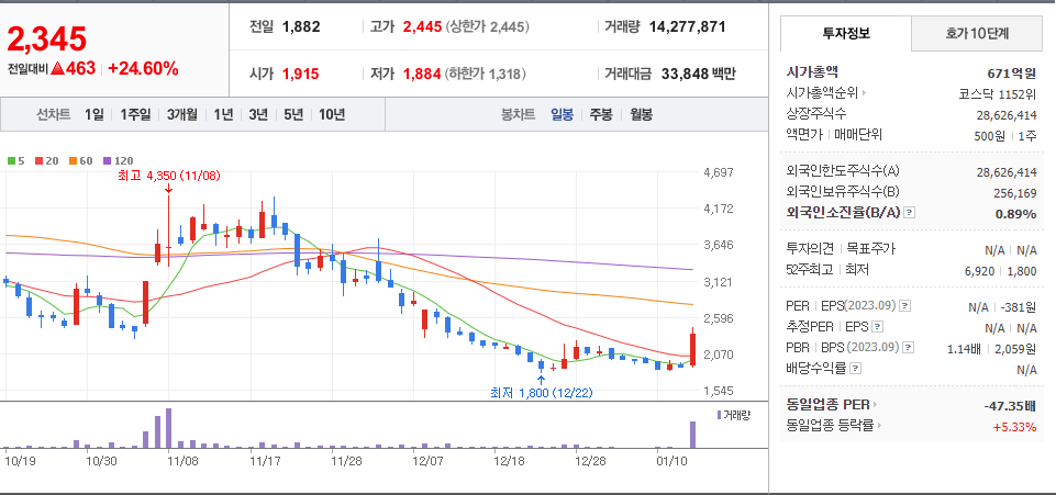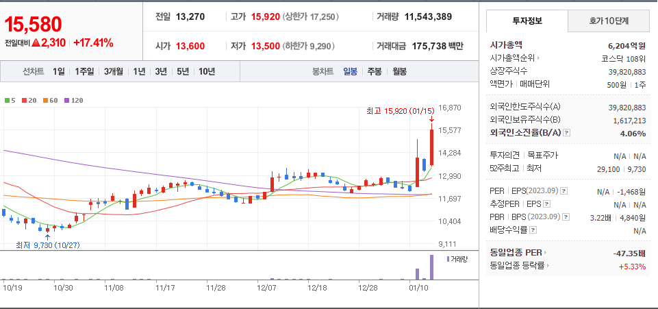 | 2024년 01월 16일 - 거래량 천만주 이상 (1) | 2024.01.16 |