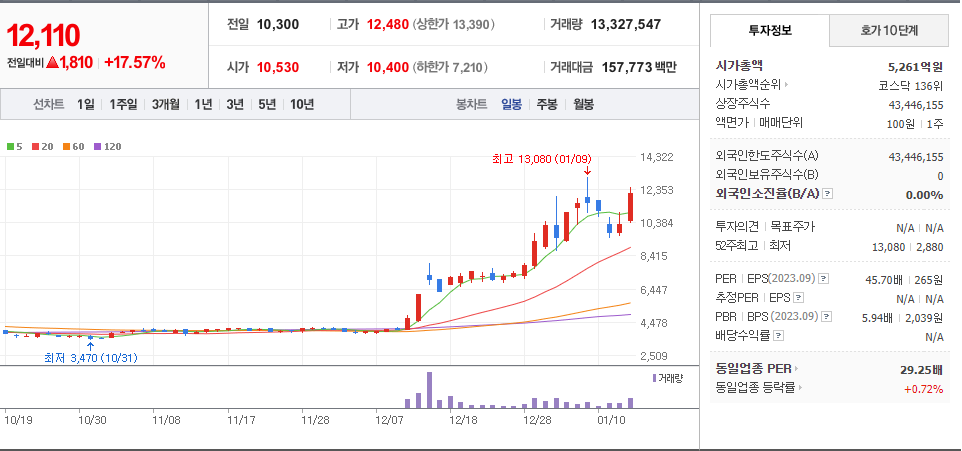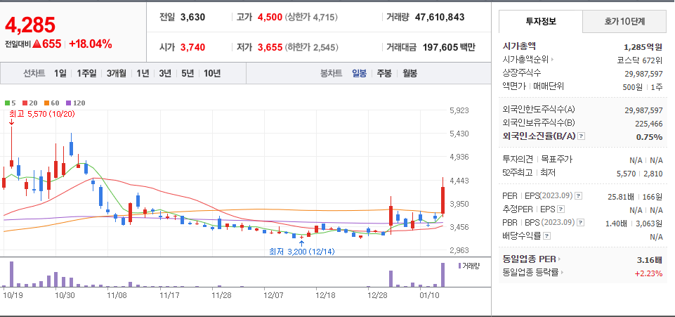 | 2024년 01월 11일 - 거래량 천만주 이상 (1) | 2024.01.11 |