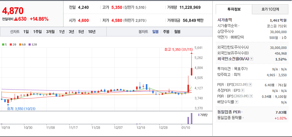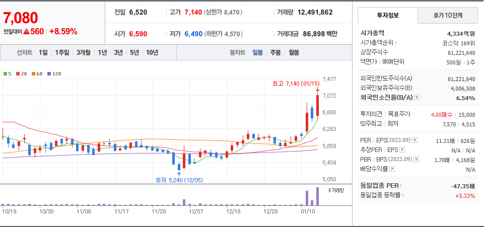 [2024.01.15] 현대공업, 미국 실리콘음극재 개발업체 투자 건 부각