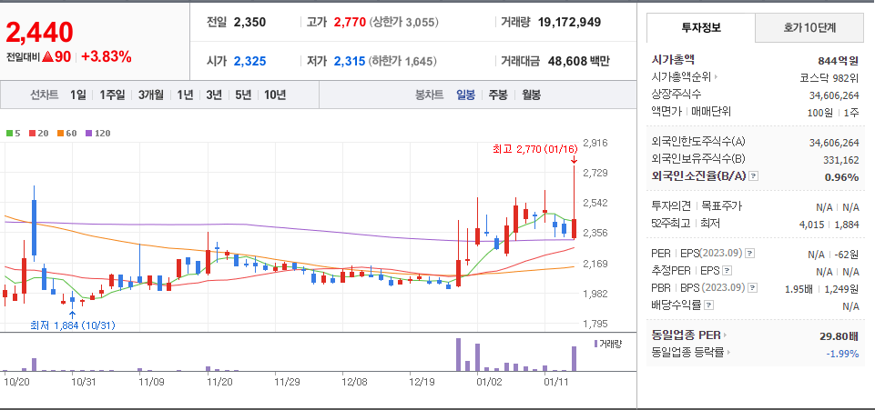 | 2024년 01월 11일 - 거래량 천만주 이상 (1) | 2024.01.11 |